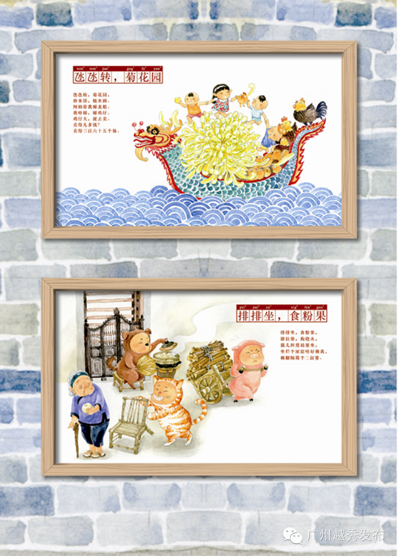 《老广新游之广府童谣》配图是由广州本土手绘创作团队——“大话国”的年轻人创作,图像趣致生动、广府味道浓;