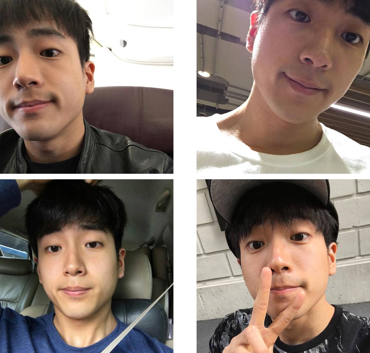 他的自拍也很雷同,每一张都是迷の直男角度,瞪大眼睛抿嘴微笑。