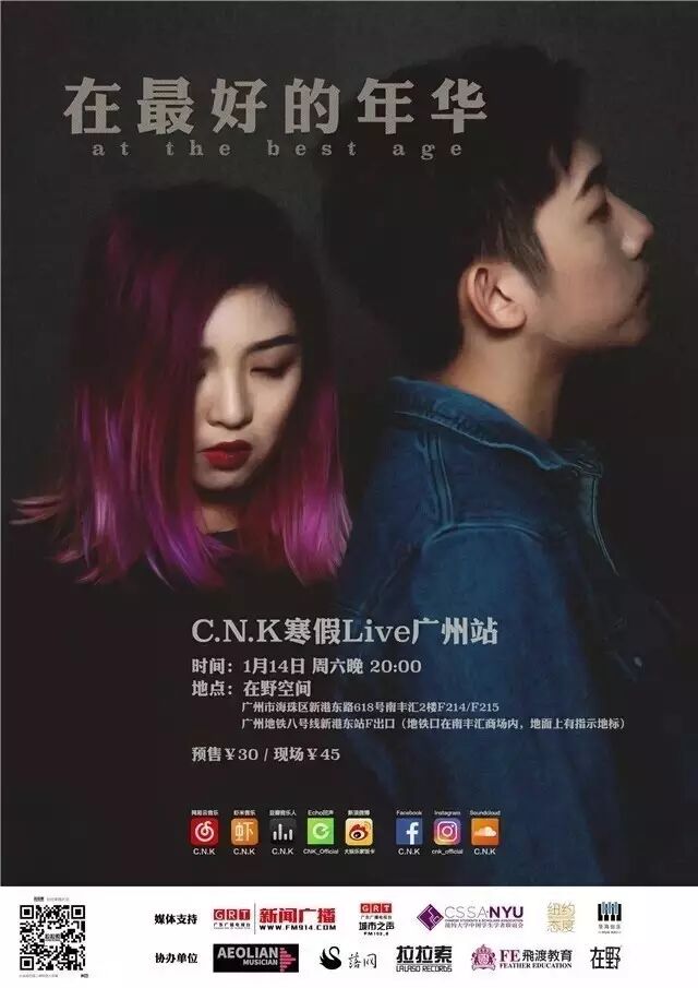 感谢大力支持华语原创音乐,购买《十九岁半》专辑,1.13前有优惠价。扫描以下二维码,到C.N.K指定的唱片店购买。