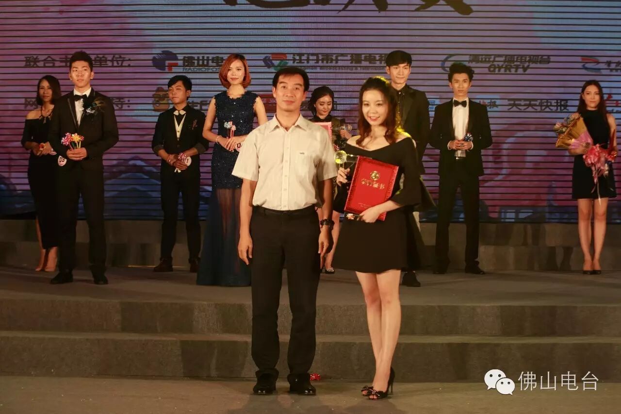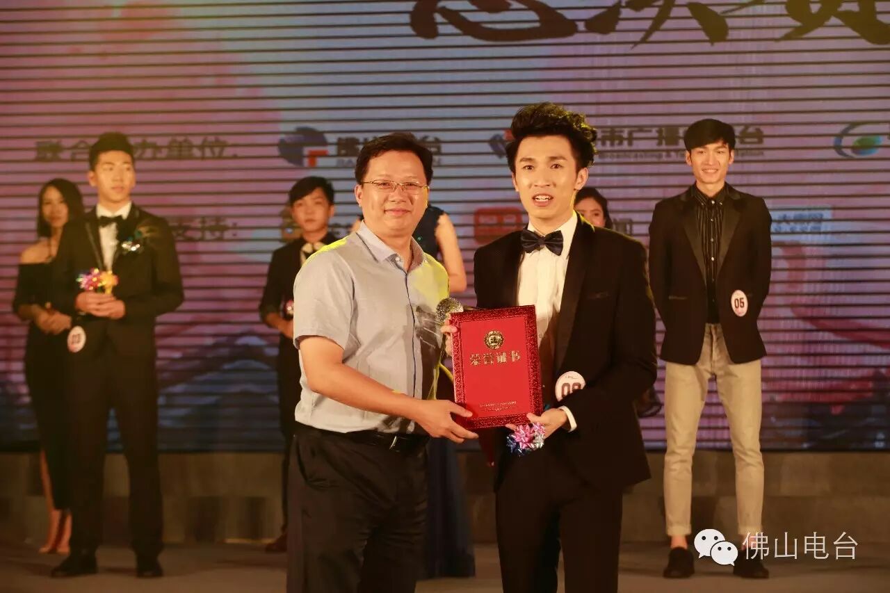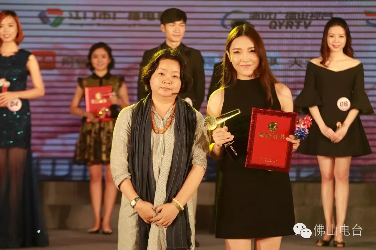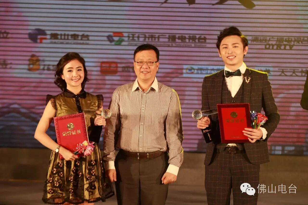 佛山传媒集团管委会副主任、佛山电台台长李先贵为季军曹曾莹颁奖
