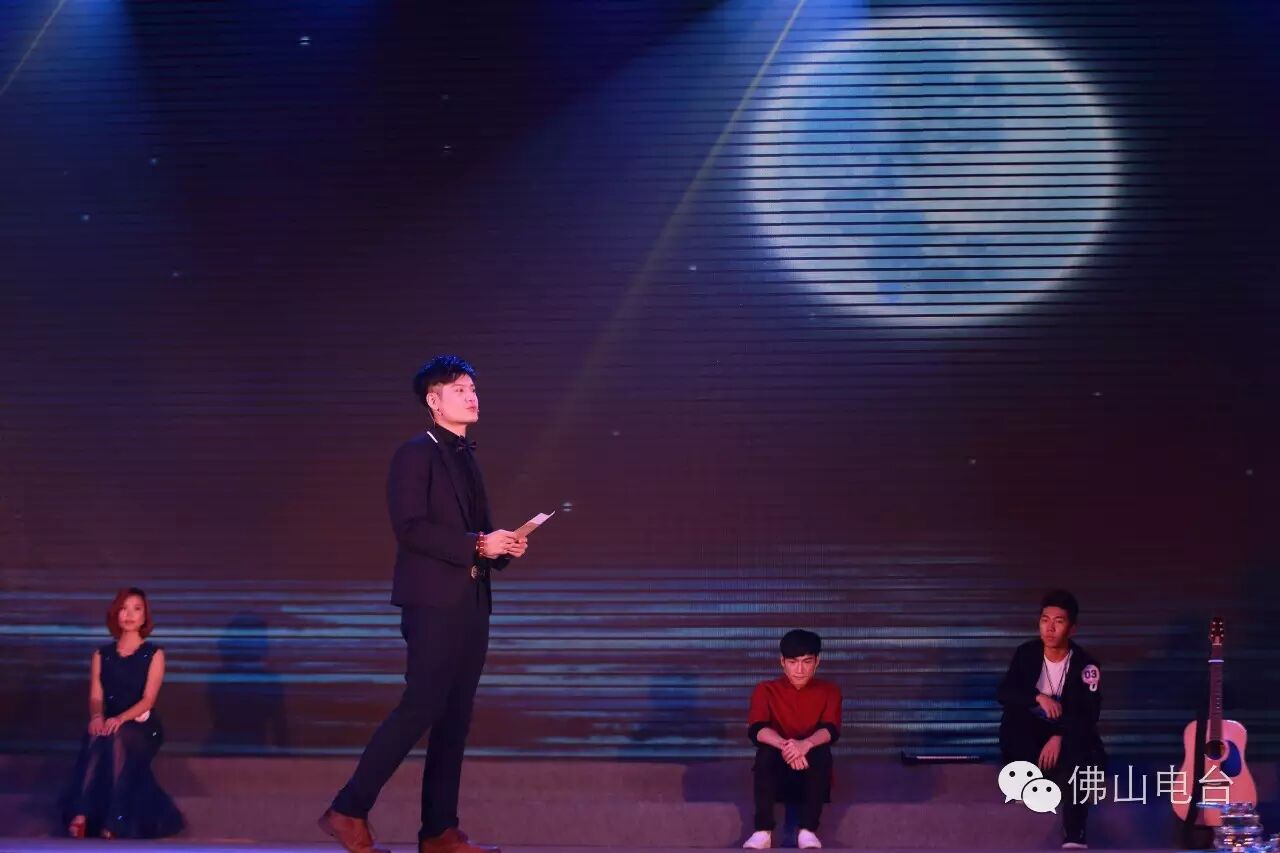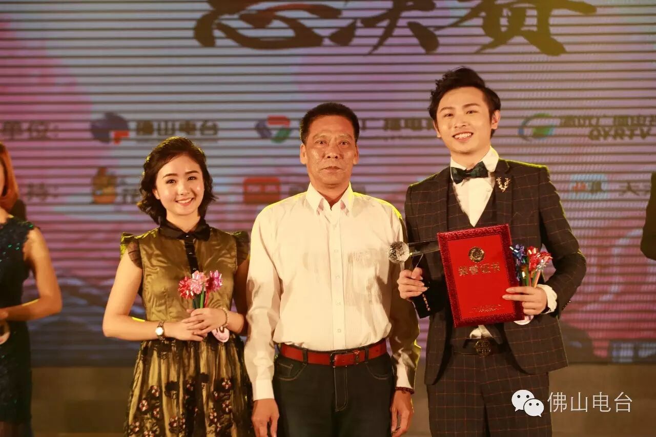 肇庆市广播电视台广播中心主任 何广明(中)为 天籁男声奖获得者黄伟钧颁奖