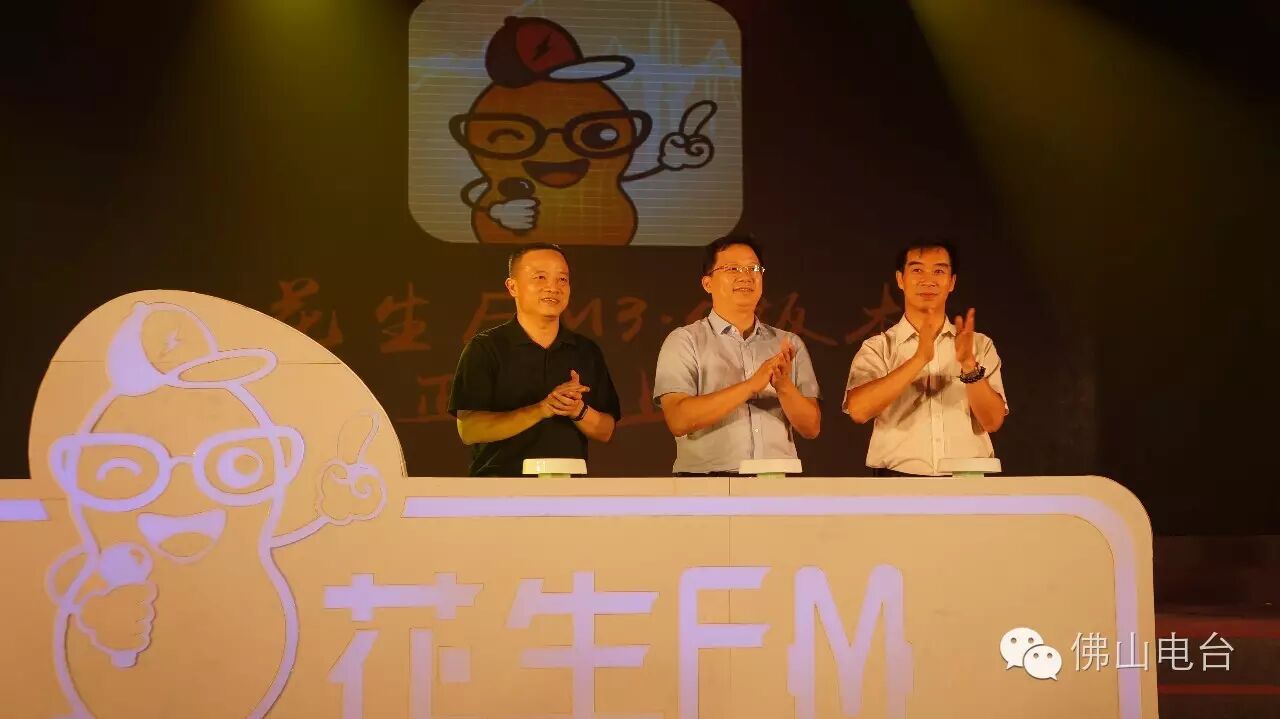 陈晓建、 网络视听节目管理处处长 彭武军、佛山传媒集团管委会副主任、佛山电台台长 李先贵共同主持粤语音频第一平台——花生FM新版上线启动仪式。