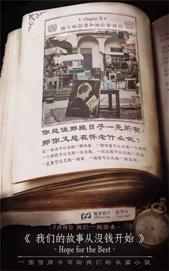 w为浦发银行操刀的微电影《我们的故事从没钱开始》,在这支微电影里,世界分为富人国和穷人国。富人国里全是老人,穷人国里都是年轻人。年轻人向往富人国,而富人国的老人却想回到穷人国。