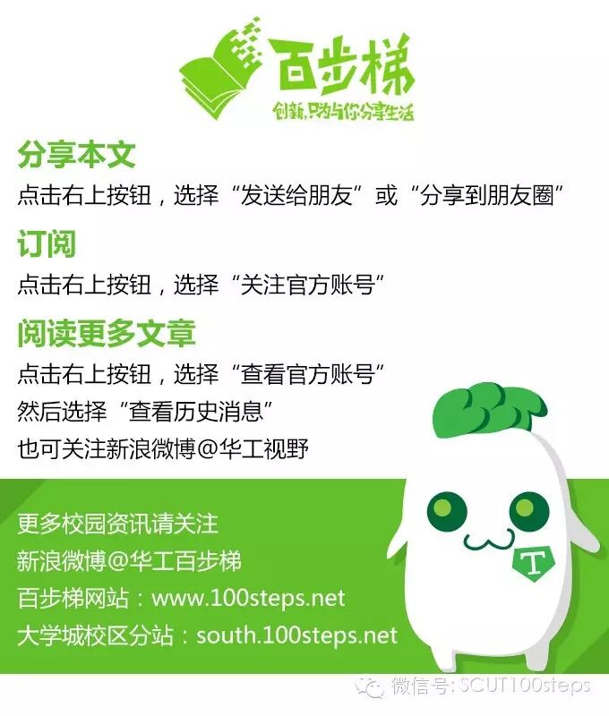 百步梯视频部重磅推出全新栏目—华工ISO,顾名思义,华工ISO即指对华工内外大小事都有敏锐的观察力的一档栏目。其共分三个子栏目:拾光、粤界、公益,关注热点,挖掘生活,普及知识,弘扬正能量。