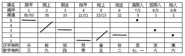 分别是高平声、高上声、高去声、低平声、低上声、低去声、高入声、中入声、低入声![]()