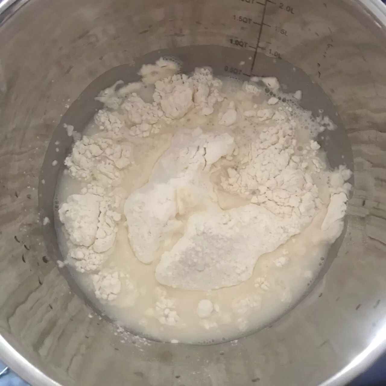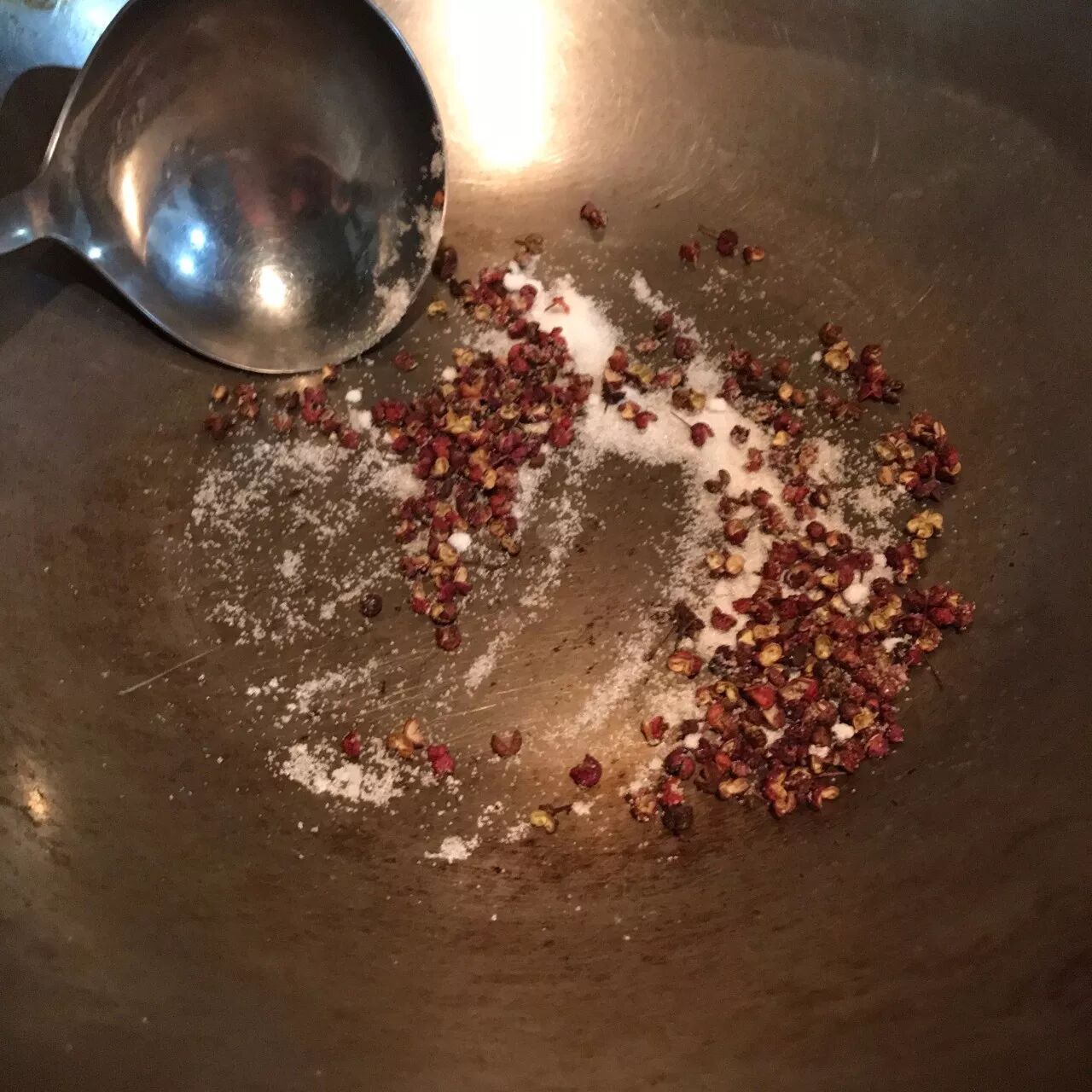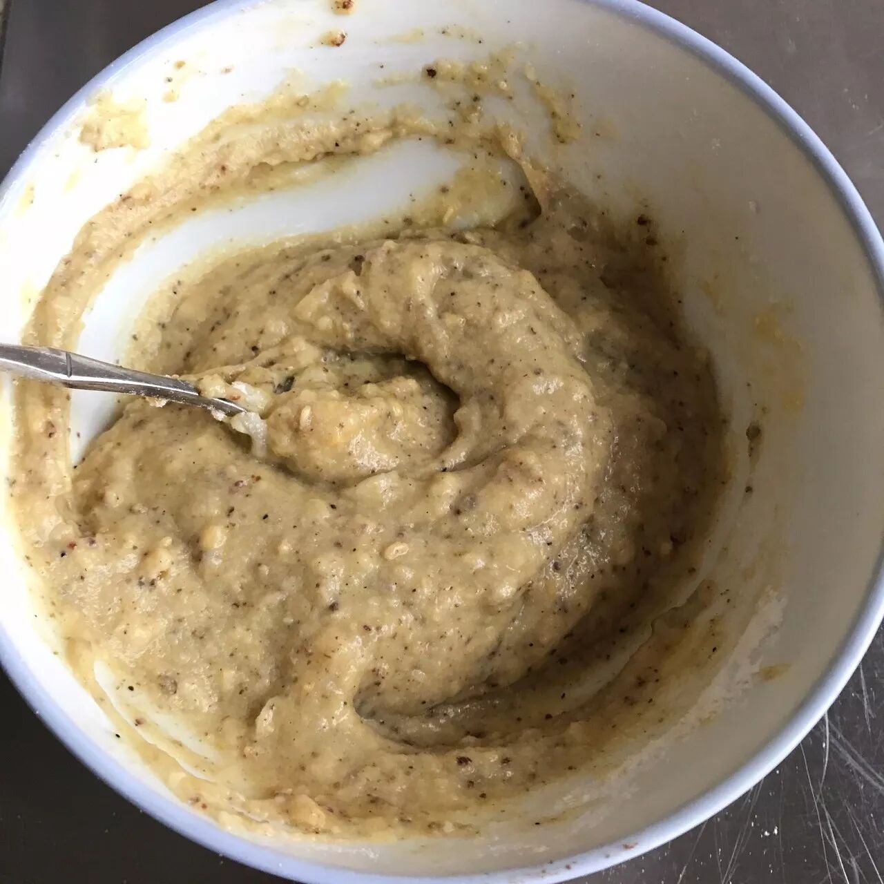 6. 油酥:猪油、低粉和剩下的一半椒盐混合均匀