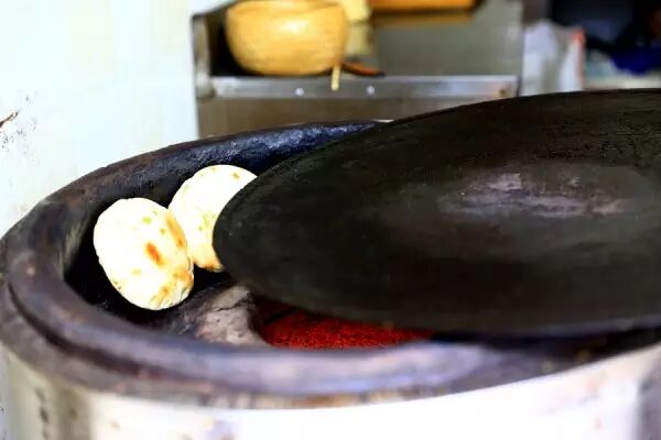 用炭火几个小时烘烤出来的,锅魁里夹杂的肉末自身受热后,油脂分离浸在表层的面皮上,锅魁皮层里每一层都夹裹牛肉,一口咬下去,酥脆美味但不油腻,满口的牛肉浓香。