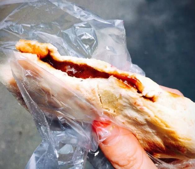 邱二哥锅魁面皮温软中带着小麦烤焦的香气,那是麦粉最原始质朴的甜香,轻轻撕开,里面粘稠的红糖暴露出来,带着甜蜜的香气。