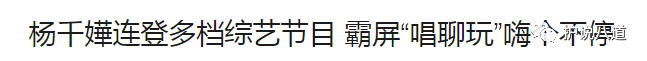 又当歌手又当演员的“大笑姑婆”杨千嬅,近期频频出现在荧幕前,小编时不时看个综艺都有杨千嬅,内心是极度的拒绝的毕竟看多同一个人就容易..............