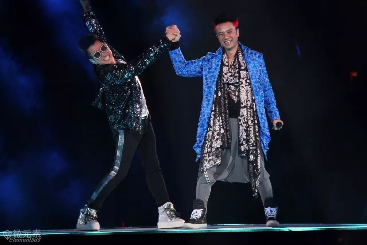 許冠傑與譚詠麟以海報造型出席記者會,共同合唱Medley歌曲。