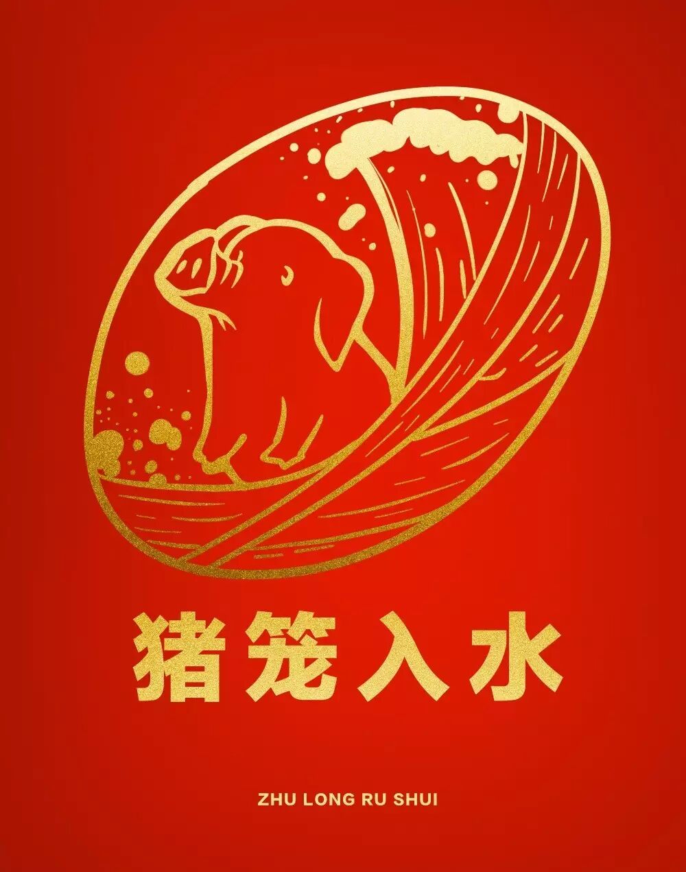 猪笼浸入水中,周围的水迅速灌进笼子里,