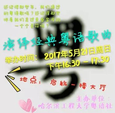 活动简介:“原谅我这一生不羁放纵爱自由”——这首红遍大江南北耳熟能详的经典歌曲正是beyond演绎的海阔天空。许多人对粤语产生浓厚的兴趣正是从听粤语歌曲开始的。从20世纪70年代一代歌神许冠杰,到80年代谭咏麟张国荣的谭张争霸,再到90年代四大天王、天后王菲,直到90年代新歌神陈奕迅,这一个个闪亮的名字,刻画在我们脑海里,记录着我们的青春。还记得那些年,我们追过的粤语歌吗?那些伴着我们走过青春岁月的一个个音符吗?粤语歌对粤语文化的传播有着不可小觑的重要作用,大部分社员加入粤语协会也是为了学习唱粤语歌,举办这次活动是为了给社员们一个展现自我的机会,将他们心中的那首粤语歌深情地再次演绎,从而增强同学们对粤语的兴趣。