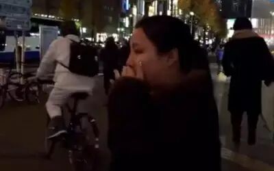 东京街头,艺人抱着吉他,日语自弹自唱老歌《海阔天空》,熟悉的旋律吸引了她,并情不自禁地跟着唱起了粤语版。接着,令人意外的一幕出现