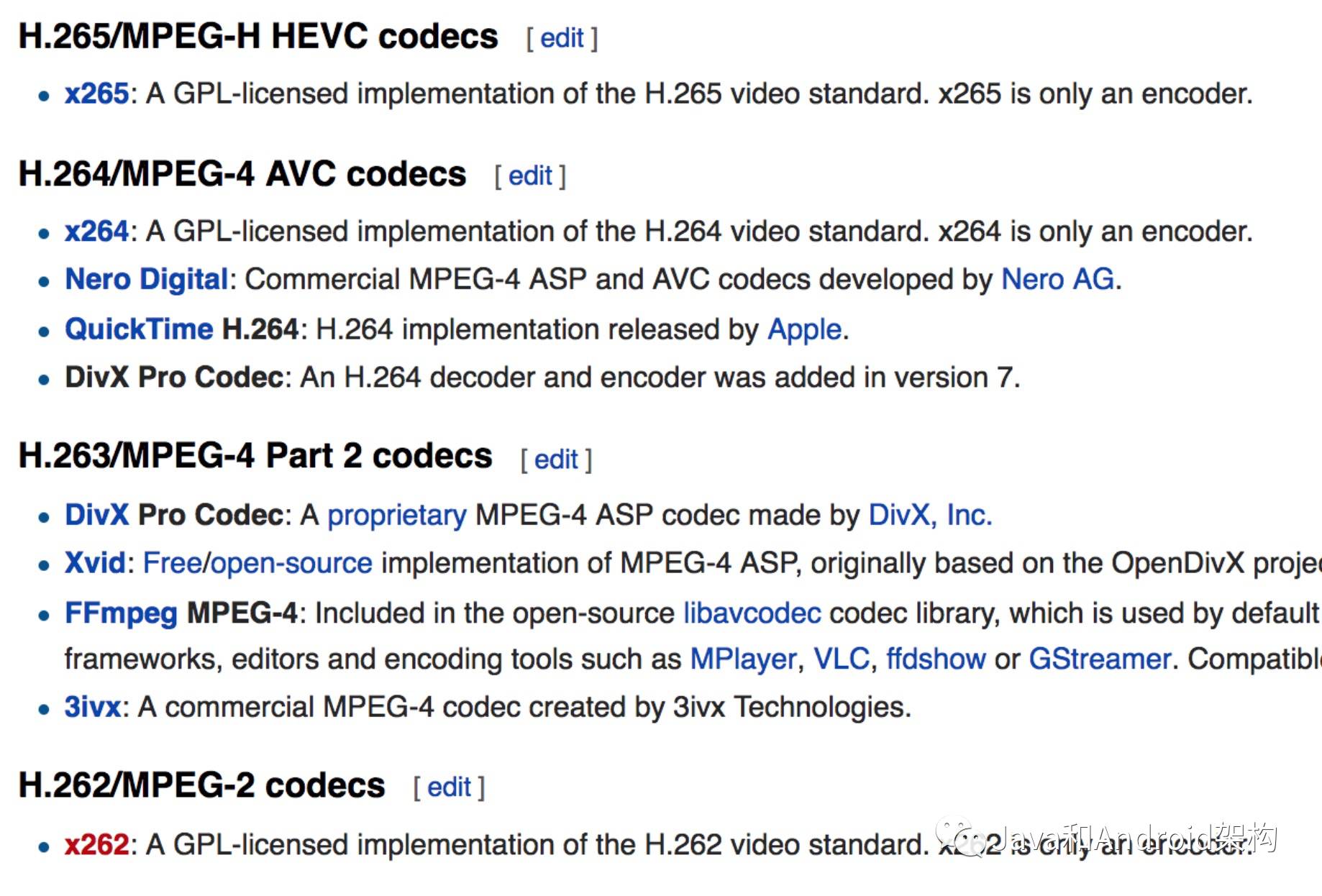 既然是一套规范,那么就肯定需要实现啊! 在安卓平台里面,谷歌提供了视频编码解码的API,对一些基础的编码解码规范做了API的封装,在接下里的章节我会慢慢介绍,其他移动平台也都差不多,多多少少都会提供API的支持。