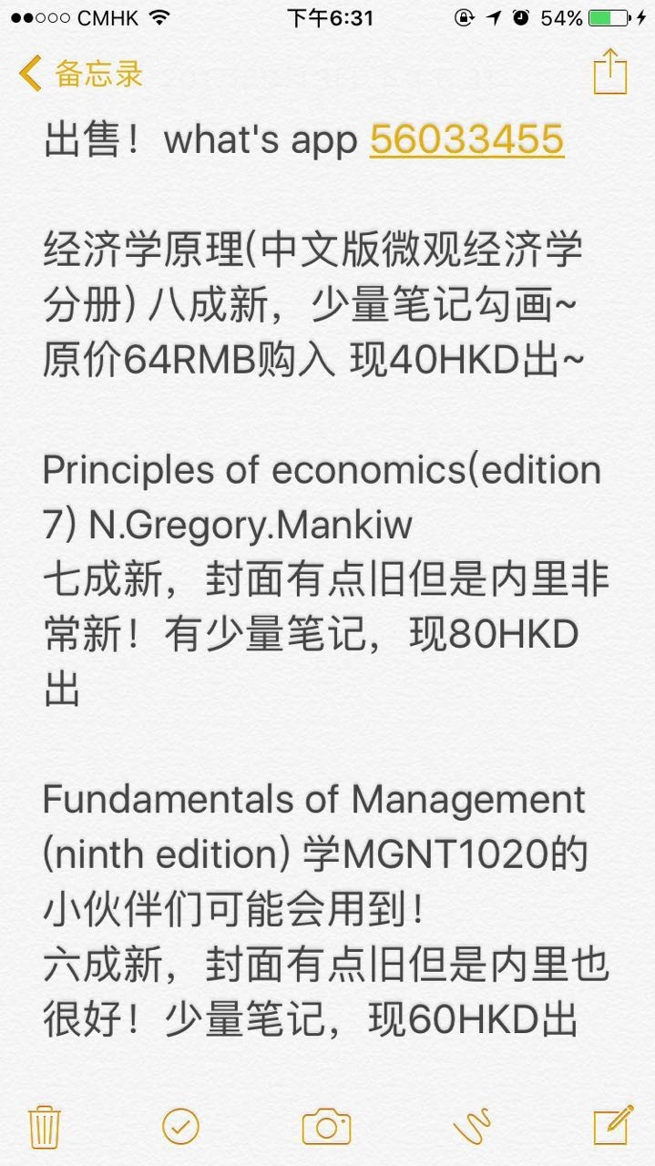 卖书fina2010 hkd150 Acct 311早版 hkd 50 不知道啥时候上的marketing hkd100 Fina3070九成新 hkd200 买书送acct3152 c law乱七八糟的笔记 ck教的