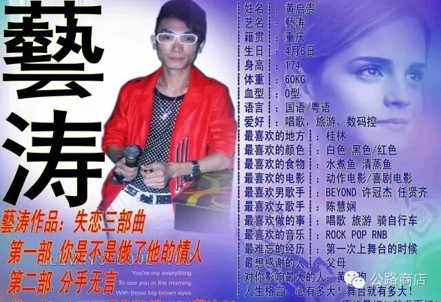 其籍贯虽然是重庆,但广东话了得,摇滚流行节奏布鲁斯样样精通。宣传资料上艾玛沃特森也露出一副羡慕的表情。