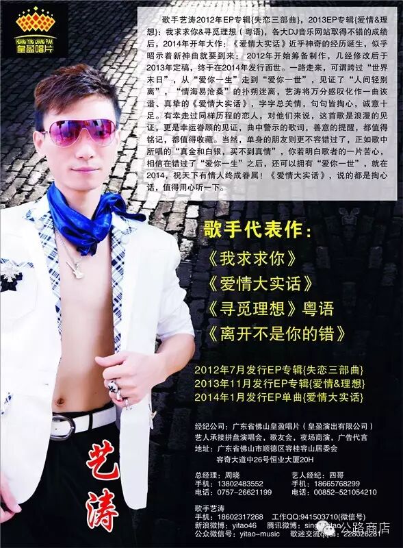你还可以在网上看到这位大哥的很多专辑和资料,据说他在酒吧浸淫数十年。最后凭借自己的努力签约于广东皇盈唱片,也不知道是否与英皇有关联。