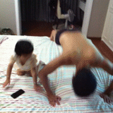 例句:啱啱做了100个俯卧撑,依家成吉思汗打仔啊。呐呐呐,你学会了吗