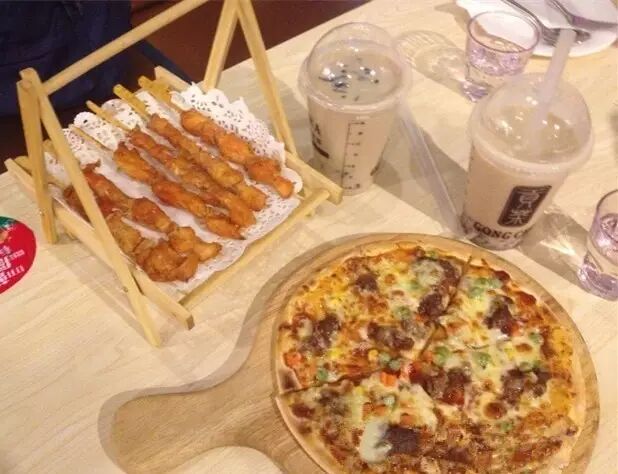 店里的风格非常亮眼,主打披萨店,当然其他餐厅有的,这都有,而且食材保证新鲜,各种饮品美食随便吃!