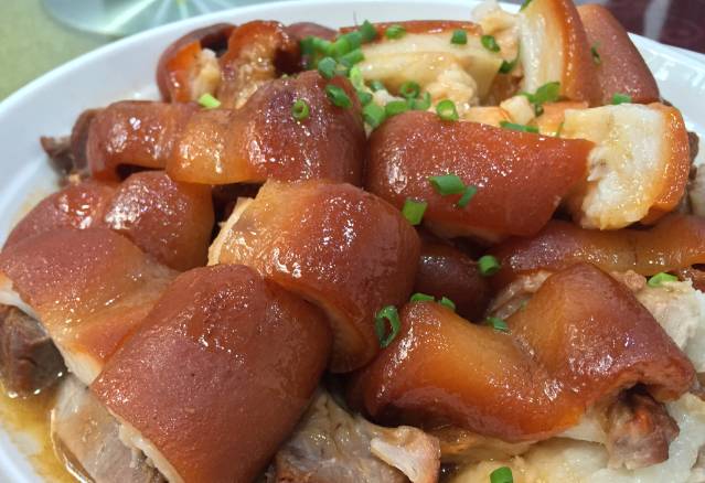 红烧猪手油而不腻,入口即融,肘子丰富的胶质和蹄筋,筋、骨、肉的错综复杂,爱美食的人当然不会放过。