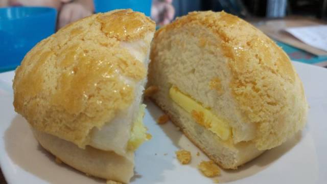 春意餐厅的招牌冰火菠萝油,对菠萝包酥皮的控制是到好处,面包口感绵密有嚼劲,每一片牛油都是厚切,咸香香度都刚刚好,咬上一口,味道已值回票价。