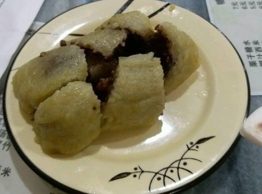 咸肉粽用红豆蓉做馅,中间放一块半肥瘦的五花腩,粽子软糯,肥肉入口即化。