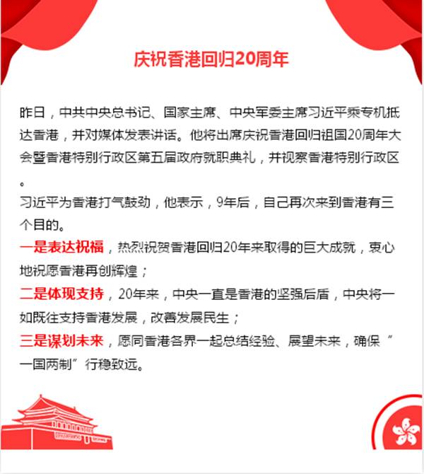 今晚别忘了收看“2017香港回归20周年庆典”哦!