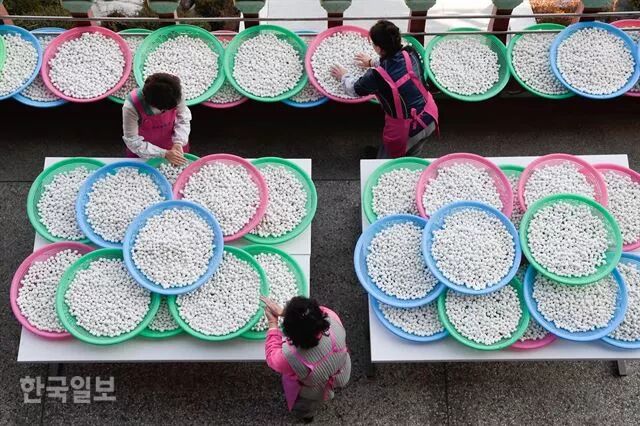 从昨天开始,韩国的阿祖玛们就动手做圆子啦!圆滚滚、胖乎乎的小圆子加上红豆的香味肯定超好吃的!