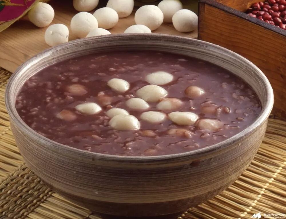 韩国的红豆粥是用红豆和糯米汤圆制成的,这些无馅的圆滚滚的汤圆比较像中国的小圆子。而且韩国有的家庭是按年龄来吃圆子,多少岁就吃多少颗。