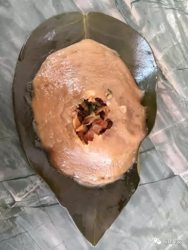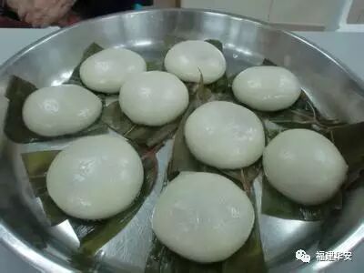 经过搅碎、晒干、揉捏、日晒等多道工序之后,糯米粿的外皮就完工了。接下来,在把揉捏好外皮与准备好的材料包裹在一起,捏成团,放置在煮好的柚子叶或是洗净的香蕉叶上,放进蒸笼,等待蒸熟即可出炉。