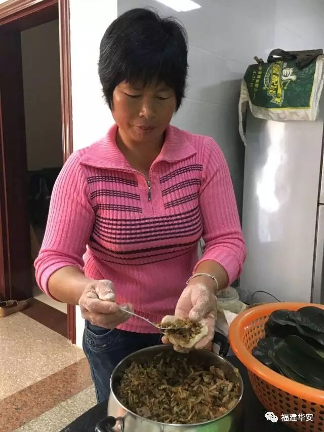12月20日下午,来到华安县华丰镇上雪新村,刚踏进村庄,一股股香气迎面扑来。原来,这是上雪新村的村民们正在忙着制作传统手工糯米粿呢。
