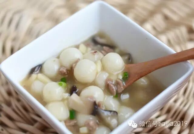 2.起油锅,爆香蒜末,入牛肉末翻炒至变色,入冬笋和香菇末翻炒,调入适量料酒,生抽翻炒,倒入一碗水煮至沸腾,倒入小丸子煮至浮起,将玉米淀粉调水倒入,煮至沸腾即可起锅撒葱花