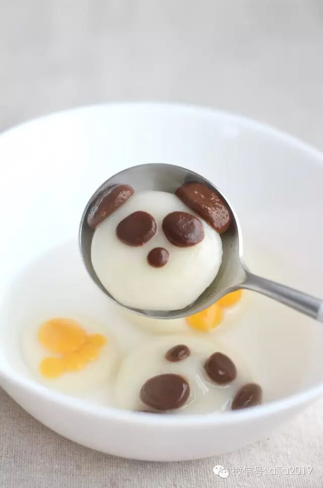 糯米粉按3:1分两份,大份的加牛奶和成白色面团,小份的糯米粉+可可粉+牛奶,可可粉和糯米粉1:4和成面团。然后白面团搓成小球做熊猫的脸,可可面团搓2大2中1小的小球分别做熊猫的耳朵眼睛嘴巴组装起来就好了,组装的时候在盘子上撒点糯米粉,直接在盘子上粘,以免粘牢![]()