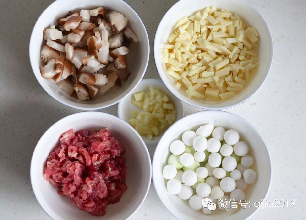 1.牛肉,冬笋,香菇,蒜切末![]()