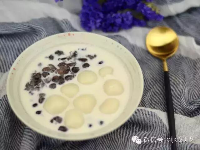 红豆提前煮好,糯米粉加温水揉匀,搓成小球球入沸水中煮熟,取两勺红豆倒入碗中,再放入圆子,倒入牛奶,就ok啦
