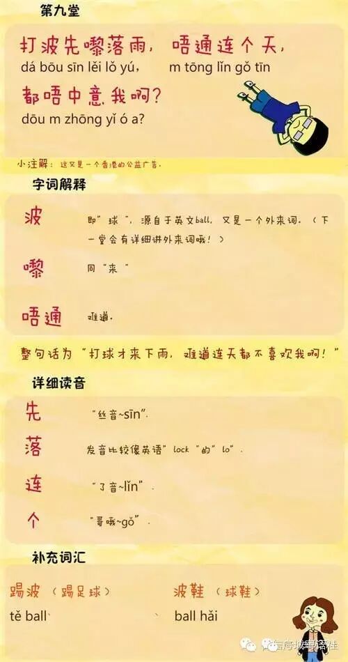 打波先嚟落雨,唔通连个天都唔中意我啊?(打球才下雨,难道连天都不喜欢我吗?)