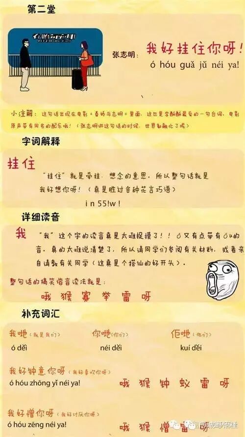 麦兜:老细,唔该有冇鱼蛋粗啊?(老板,请问有没有鱼蛋粗面啊?)