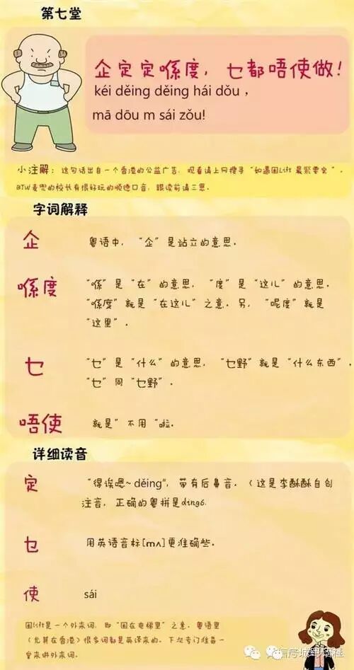 企定定喺度,乜都唔使做!(在这儿站好,什么都不用做!)