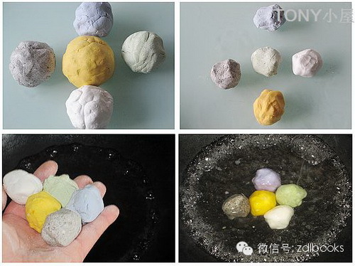 13.从上面揉好的糯米面团各自取下16克小面团,放入水中煮到浮起来,也可以一个个放入锅中煮;