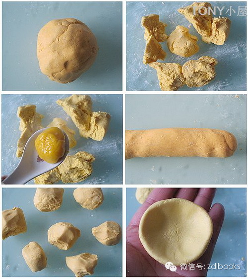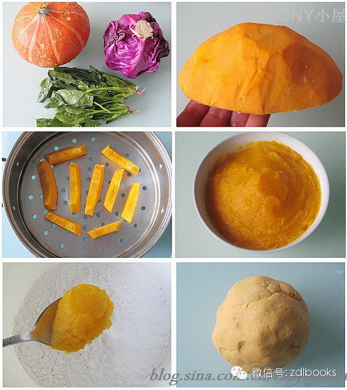 1-南瓜去皮后切成小块,蒸锅里加冷水蒸15分钟即可;3-取100克水磨糯米粉,慢慢加入200克左右的南瓜泥和成面团;