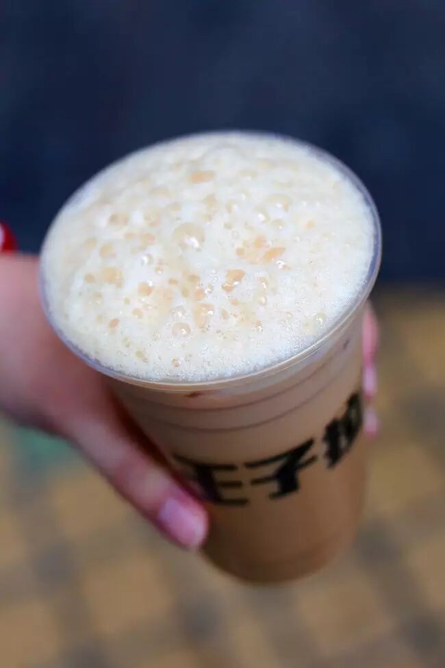 小贴士:要想知道你喝的芝士奶盖是不是有足量真芝士,一开始可以先喝一口芝士奶盖——在舌头与上颚相接触时,除了细滑的奶泡,还能感觉到一颗颗的芝士颗粒!!有可以嚼得到的芝士颗粒,才是真芝士奶盖!
