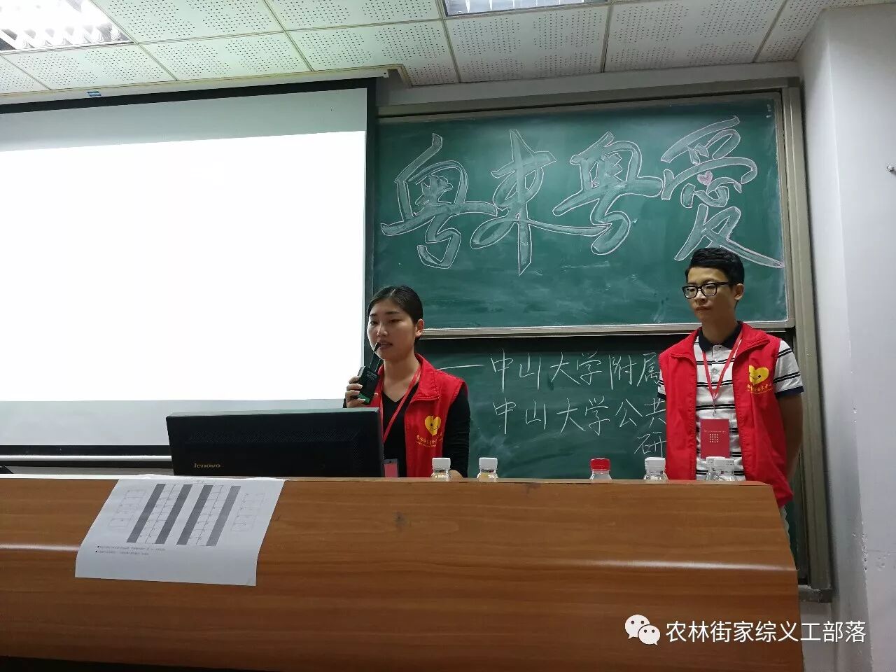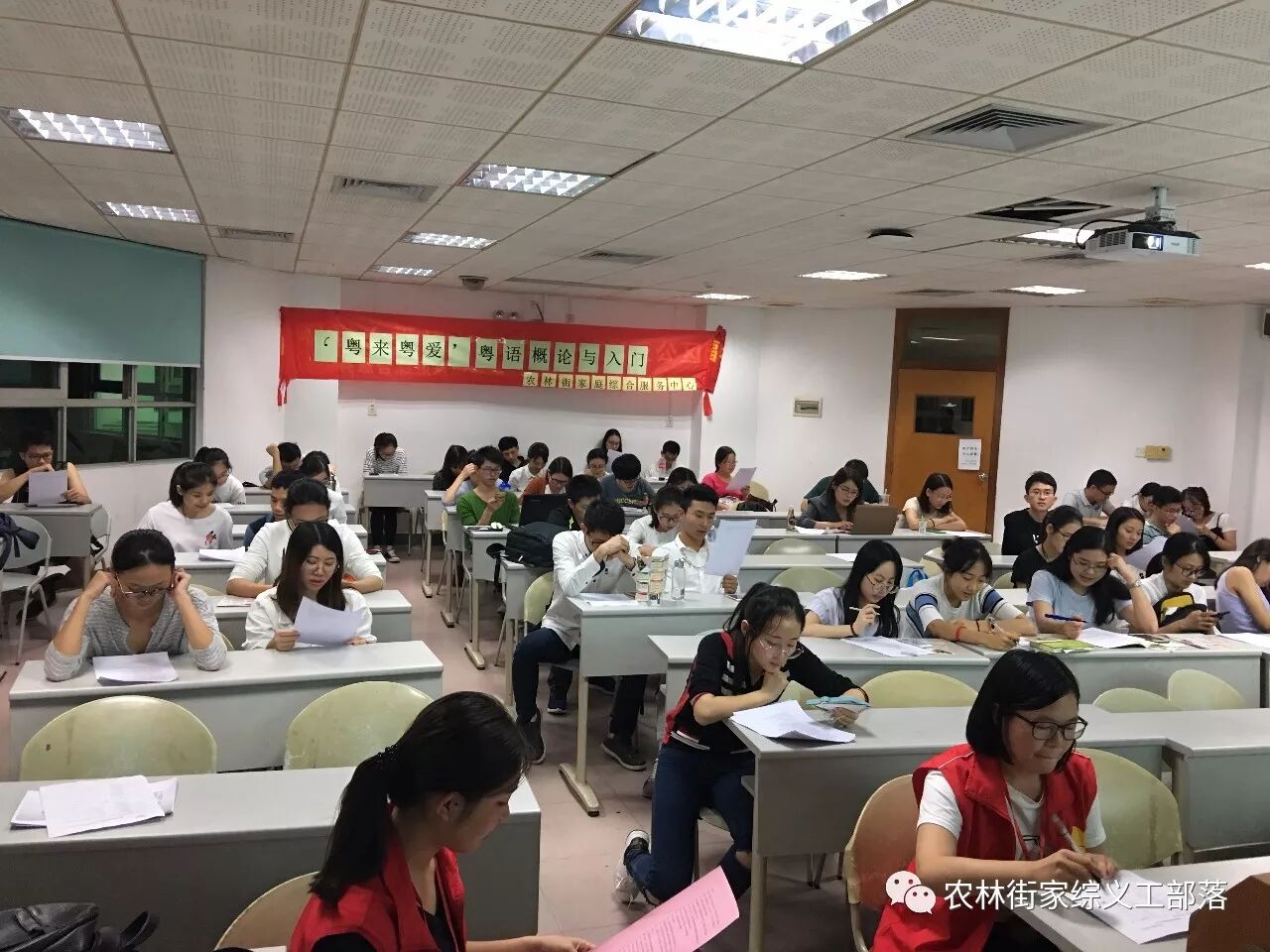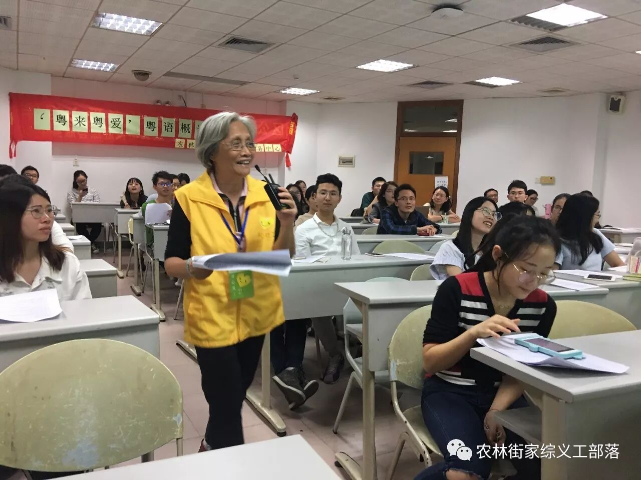 2017年10月27日晚上,在中山大学北校区教学楼202室,举办了一场由农林街家庭综合服务中心与中山大学第一附属医院、中山大学公共卫生学院研究生会共同举办别开生面的“粤来粤爱”粤语概论与入门的活动。参加这次活动的是一群年轻有活力的研究生,他们来自五湖四海,带着尽快融入广府文化的热情和为今后工作的需求,希望组织一次这样的活动,而农林街家综又有过举办粤语学习的经验,大家一拍即合,于是就有了这次有创意的粤语学习体验,让粤语学习进入大学学府。