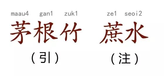 上边所讲嘅「茅根竹」其实系一种特殊嘅歇后语,将固定短语最后嘅字或者词语隐去,保留嘅部分叫“引”,隐去嘅部分叫“注”。