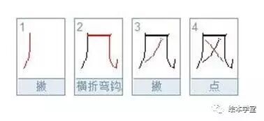 (撇点,斜钩[按教科书应为“卧钩”] 2种)