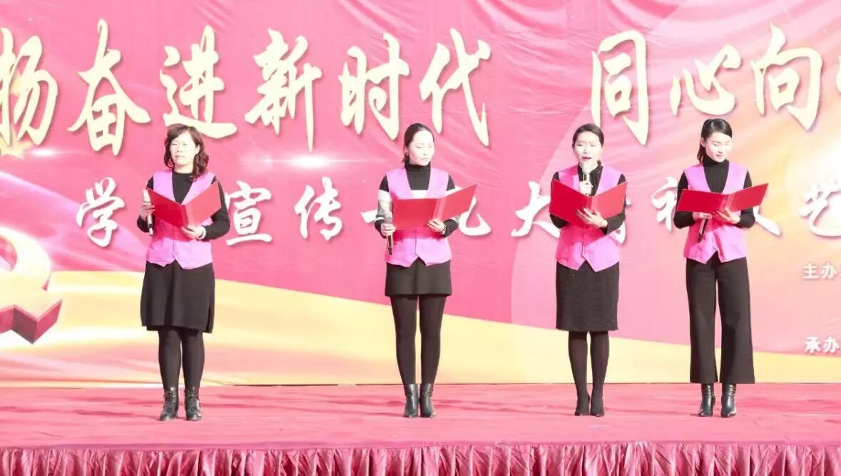 在党的十九大召开期间,廊坊市香河县妇联积极组织妇联干部、巾帼志愿宣传队、巾帼志愿讲师团、最美家庭、美丽庭院示范户及时学习十九大精神,畅谈感受,并加班加点,夜以继日地编排宣传文艺节目。为了把活动开展得深入人心,紧接地气,香河县妇联指导巾帼志愿宣传队编排歌舞《走进新时代》,,也展现了基层群众坚决拥戴信赖、,及在思想上、、;,要以培养担当民族复兴大任的时代新人为着眼点,强化教育引导、实践养成、制度保障,、精神文明创建、精神文化产品创作生产传播的引领作用,,转化为人们的情感认同和行为习惯”为主题,创作了《我爱你,香河》和《幸福香河》等昂扬向上的歌曲;美丽庭院示范户将“产业兴旺、生态宜居、乡风文明、治理有效、生活富裕”的十九大提出的总要求,编排成《歌颂新农村》的三句半文艺形式。