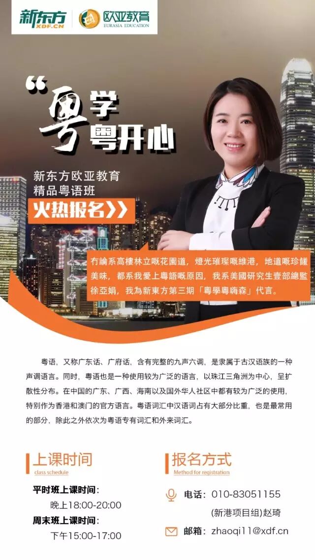 新东方前途出国精品粤语课程,是由新东方前途出国欧亚事业部综合部发起主办的、并隶属于亚洲名校规划班的一项高水准、高品质的课程服务。该课程旨在为即将踏上香港求学之旅的学生,提供循序渐进的粤语训练,使其建立起对粤语学习的兴趣,并为将来更好地融入香港社会奠定基础。由此,该课程也是新东方前途出国香港留学后续服务的延续。