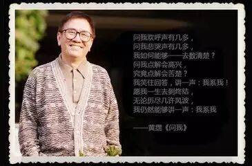 “无论我有百般对,或者千般错,全心去承受结果。面对世界一切,那怕会如何,全心保存真的我。问我点解要高兴,究竟点解要苦楚?我如何能够 一一去数清楚?问我欢呼声有几多?问我悲哭声有几多,我笑住回答,讲一声,我系我。”现实中的黄霑并不是一尘不染的完人,他有许多让人抱怨的毛病,爱说不文笑话,爱说粗话,但是有一样东西和他的才华一样令人不得不佩服,那就从不迎合外界,始终坚持自己的风格。