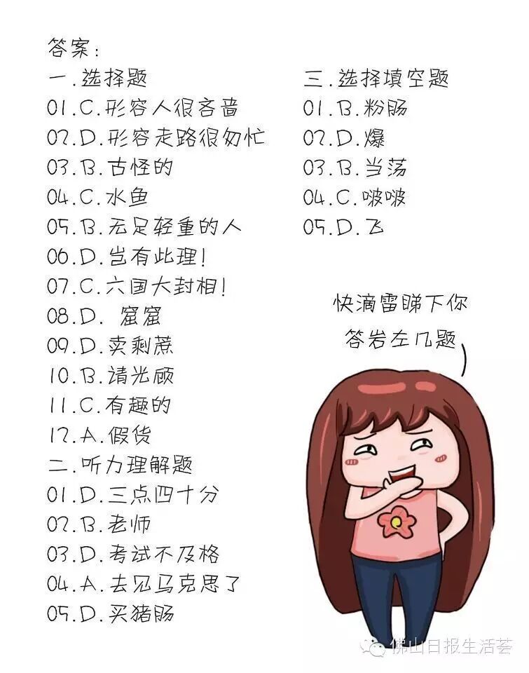这里还有一套粤语试题