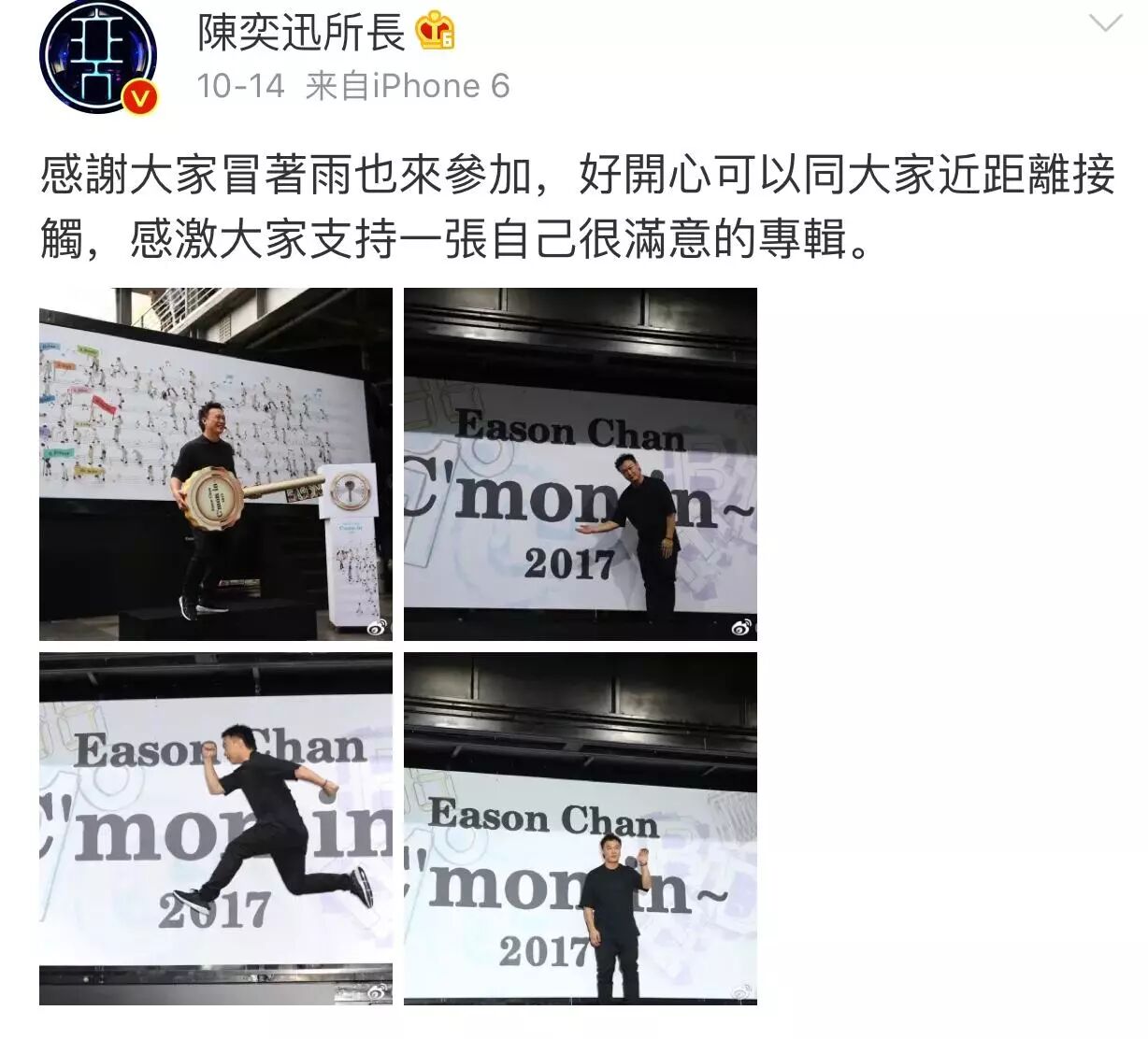 竟然翻到了Eason 半个月前发的动态: