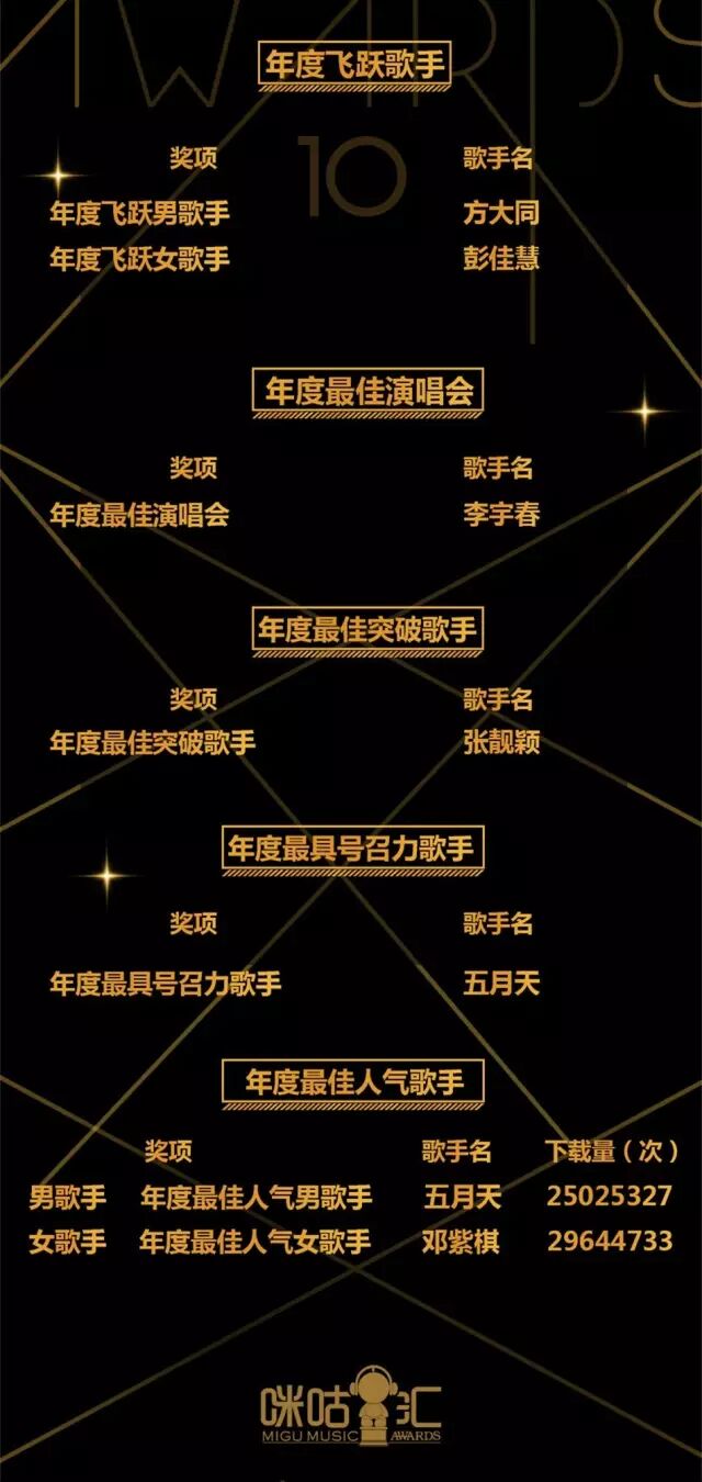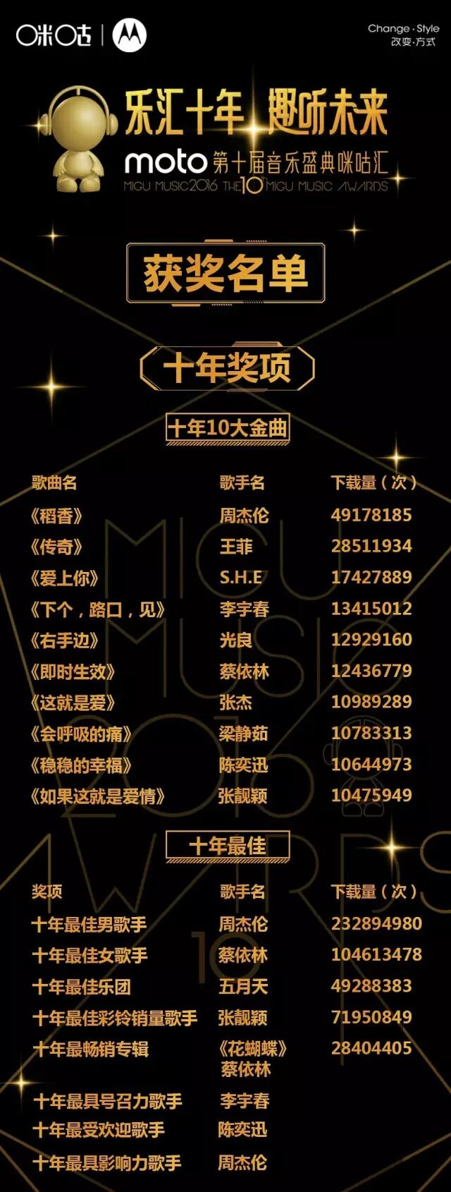 附:Moto第十届音乐盛典咪咕汇完全获奖名单